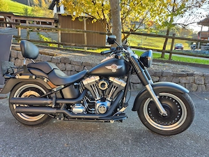 Verkaufe meine Harley Davidson Fat Boy spezial in schwarz matt. Zusätzliche eingetragene Features: Remus Auspuff - Original Auspuff vorhanden - Luftfilter Umbau Original vorhanden - dunkle Rückleuchte montiert - Original vorhanden - dunkle Blinker - kleine und große Satteltasche - Sissybar - Abdeckpad ...