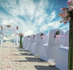 Stuhlhussen weiß waschbar - einmal verwendet bei Hochzeit.