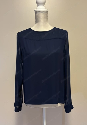 Dunkelblaues, transparentes Damen Oberteil langarm von Hilfiger 1 von 4 kleinen Knöpfen an der Manschette fehlt Gr. S Haustierfreier Nichtraucherhaushalt