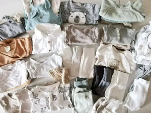 Ich verkaufe ein wunderschönes 48-teiliges Unisex-Bekleidungspaket in der Größe 50 56. Ideal für Mädchen oder Jungen Das Paket beinhaltet unter anderem: Viele süße, kombinierbare Sets Bodys Hosen Oberteile Schlafanzüge Und als Highlight: 2 C&A Schlafsäcke mit niedlichen Bärchen Alle Teile sind in ...
