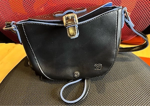 Umhänge-Handtasche der Marke "Tom Tailor denim" - Farbe schwarz mit blau - Maße: ca 24 cm x 18 cm x 9 cm - Material: Leder - Magnetverschluss - hinten 1 Reißverschluss-Fach - innen 1 Reißverschluss-Fach + 1 Steckfach - verstellbarer Umhängegurt (nicht abnehmbar) kaum benutzt daher neuwertig abzuholen ...