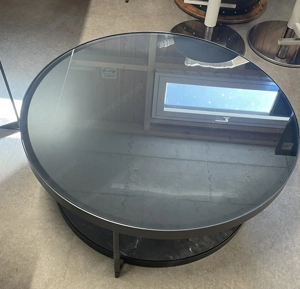 anthrazit marmoriert schwarz Glas DM= 88 cm Gebrauchsspuren bzw. Kratzer beim Glas vorhanden.