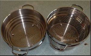 2 Kartoffeldämpfer (unterer Durchmesser = 20 cm) und zwei 20 cm Töpfe, kombinierbar (2 Flächen übereinander), hochwertiger Chromstahl, alle 4 Teile zusammen EUR 39,--. Topzustand....! Kann auch als Sieb verwendet werden. MULTIFUNKTIONAL Mit dem praktischen Aufsatz kannst du sowohl dünsten als auch ...