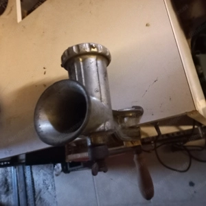 Fleischwolf mit verschiedenen Durchgängen einmal mit Handbetrieb (Kurbel) und einmal zum anschließen an ein Hausgerät