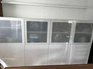 Verkaufe IKEA Besta Vitrinenschrank Kommode, 2 Stück, je 120x40x130cm (BxTxH). Oben mit matter Glasstür unten Glänzend weiss. Die Schränke sind in gutem Zustand, von einer nichtraucher Wohung und ohne Haustiere. Nur persönliche Abholung ist möglich.