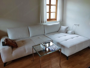 Verkaufe meine hochwertige Couch die noch zur Vergrösserung elektrisch Ausfahrbar ist aber leider zu groß für die neue Wohnung . Länge 285 , Tiefe 210 . Mega viel Platz und Topzustand . Mit Polster . Marke Livin laut Etikett