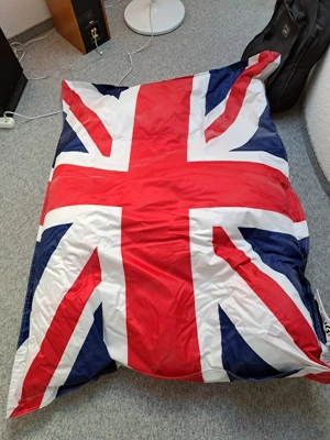Sitzsack Mr. Big (ca. 125x175 cm) mit Muster Union Jack (Flagge UK Grossbritannien) mit passender Fleecedecke. Abholung in Widnau.