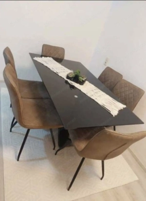 Esstisch mit 6 drehbaren Stühlen - 180cm Esstisch hat eine Folie (darunter Schwarz aus Glas) Stühle haben Sitzbezüge (siehe letzte Foto für original) Privatverkauf keine Garantie und keine Rücknahme