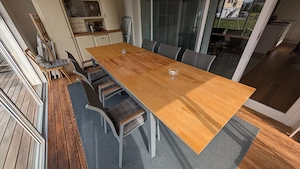 Gestell Aluminium Tischplatte ausziehbar Buche geölt 195(275)x95 6 Stühle