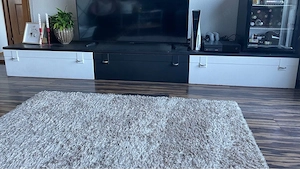 4 teilige Wohnwand (OHNE TV und Inhalt) wegen Umzug zu verkaufen . Gesamtbreite Tv Boards 2,40m h=34,5cm t=38,5cm. 2 Hängeschranke mit Beleuchtung h=103,5cm b=61,5cm t=32cm.