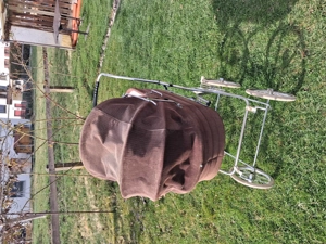Kinderwagen von 1977, Schnürlsamtüberzug, mit Matratze, in sehr gutem Zustand