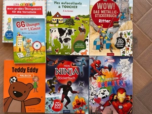 zu verschenken! Die Malbücher sind schon bemalt und viele Stickers aus den Büchern geklebt. für kleine Kinder zum kritzeln oder ausmalen noch genügend Seiten frei.