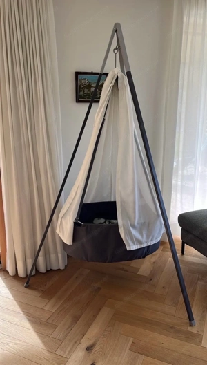 Hexagonform 1m Durchmesser inkl. Alvi Matratze (Bezug waschbar 60 Grad) und 2 Leintücher (rosa & blau). Hat Räder und ist höhenverstellbar (3 Stufen). Bereits zusammengebaut für Abholung.