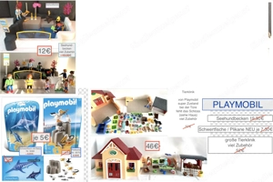 Stelle mehrere Playmobil -Set s in verschiedenen Inseraten ein, neu + gebraucht, mit oder ohne Originalverpackung. Die Kids haben vieles nach Phantasie & Liebe zusammengestellt. Zubehör laut den Fotos. Seehundbecken mit Zubehör. Schwertfisch mit Baby Nr. 9068. Pelikane Nr. 9070. Große Tierklinik mit ...