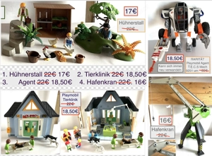 Stelle mehrere Playmobil -Set s in verschiedenen Inseraten ein, neu + gebraucht, mit oder ohne Originalverpackung. Die Kids haben vieles nach Phantasie & Liebe zusammengestellt. Zubehör laut den Fotos. Hafenkran grün mit echten Schrauben statt Plastikschrauben (die waren gleich abgebrochen). Rarität: ...