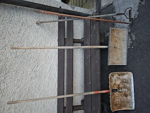 Wie auf dem Bild 2 alte Schneeschaufeln und 2 Gartenhacken im Set abzugeben. Abholung Dornbirn nähe Kehlerpark.