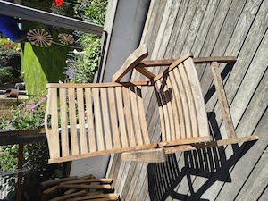 4 Stück Teakholz -Gartenstühle mit verstellbarer Rückenlehne. Pro Stuhl 20,-