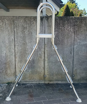 Poolleiter für Aufstellpool rostfreie Edelstahlholme für Chlor- sowie Salzwasserpools - mit 4 rutschhemmenden Stufen aus massivem Hartkunststoff und einer großen Plattform (Unterkante 125 cm) für einen sicheren Einstieg 190x150x55 cm gebraucht