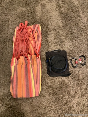 Neuwertige Hängematte aus Stoff + neue Seile + Karabiner