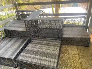 Garten Lounge aus Pollyrattan Gaphit Grau, 7 Elemente je 70 cm mit hellgrauer Polsterung, Wetterfest UV- beständiges pflegeleichtes Material, Platzsparende Lagerung, wegen Platzmangel nicht komplett aufgestellt!