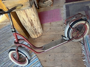 Verkaufe alter Tretroller aus den 1970er Jahren mit Luftbereifung, Bremse, Klingel, Gepäckträger und Klappständer. Reifen sind noch o.k.. Beim Roller selbst ist einiges zu richten.