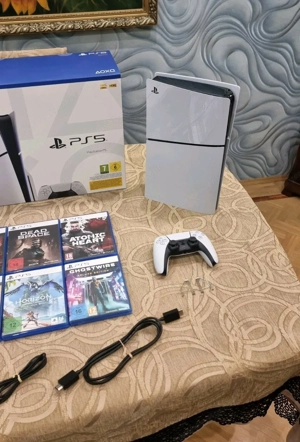 Die PlayStation 5 Slim-Spielkonsole mit Spielen und Controller funktioniert einwandfrei und weist keinerlei Mängel auf.