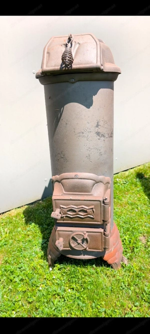 sehr schöner alter dekorativer Kanonenofen. Ideal auch als Pflanzenständer. Muss leider weg weil wir den Platz nicht mehr haben.