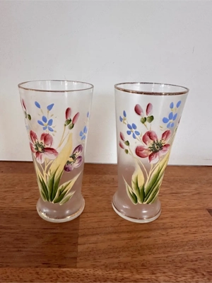 2 Gläser mit handbemalten Blumenmotiven