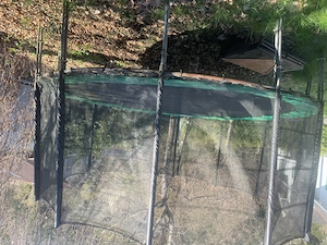 Zum Verkauf steht ein Trampolin mit einem Durchmesser von 427 cm. Das Trampolin ist in einzelnen Teilen abmontiert, sodass man es gut transportieren kann.