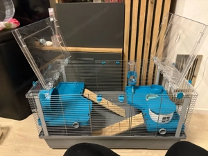 Verkaufe großen, neuen Kleintierkäfig, war nur 2 Wochen in Verwendung, da wir nun einen Außenstall haben. Inkl. Ecktoilette und Wasserflasche.