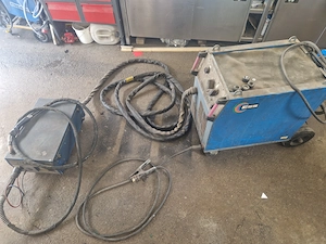 Mag-Schweißgerät der Marke Ess. Vollfunktionsfähig. Mit drahtvorschubkoffer und ca. 8m schlauchpaket. Doppelrollenvorschub, 400A. Ohne Gasflasche
