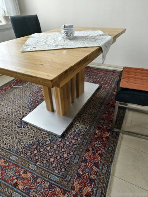Schnäppchen! Schöner großer Esszimmer-Tisch günstig abzugeben. Wie neu. Tischplatte in Eiche massiv. Stabiler Mittelfuß. 160 cm, verlängerbar auf 210 oder 260 cm, 90 cm breit